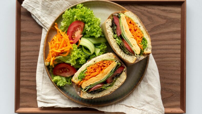 Fifth on our list of tasty Mediterranean lunch ideas is a veggie sandwich. Take out the lunch meat entirely and opt for a sandwich packed full of various vegetables. This includes crispy cucumbers and peppers, sweet tomatoes and beets, and tangy bell peppers. For a little bit of extra flavor, add some spreadable cheese to your bread.